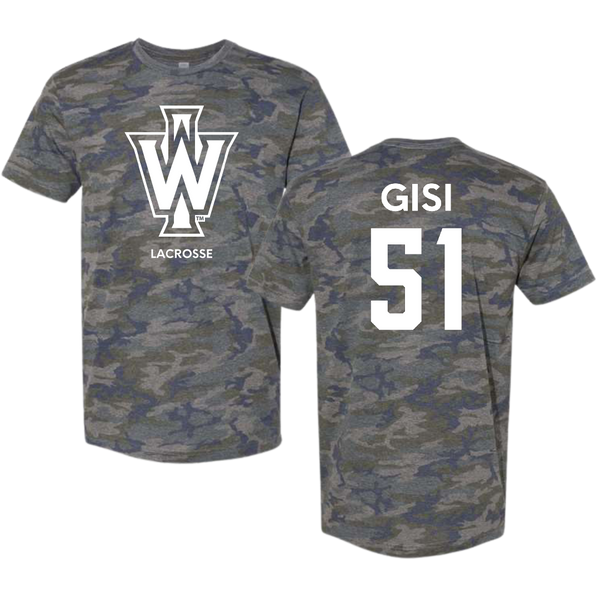 Illinois Wesleyan University Lacrosse (M) Vintage Camo Tee - #51 Jake Gisi
