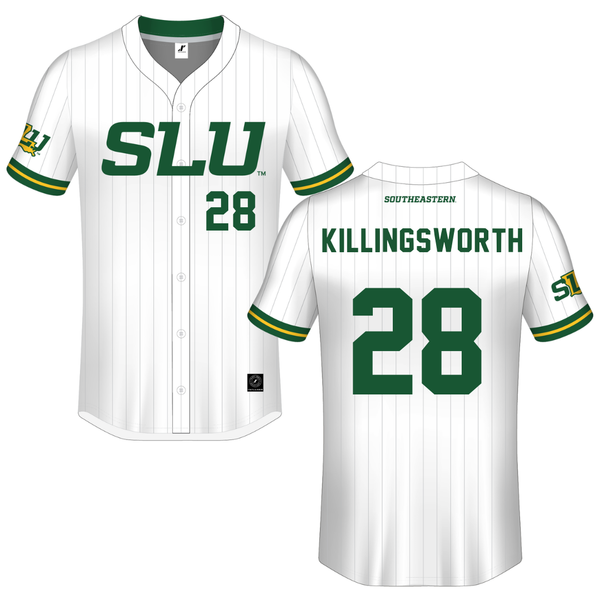 Southeastern Louisiana University White Pinstripe Button-Down Jersey - #28 Jake Killingsworth
