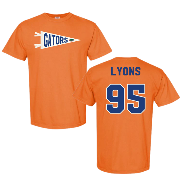 University of Florida Football Orange Pennant Comfort Colors Tee - #95 Jamari Lyons