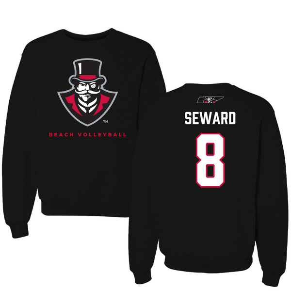 Austin Peay State University Beach Volleyball Black Mascot Crewneck - #8 Jamie Seward