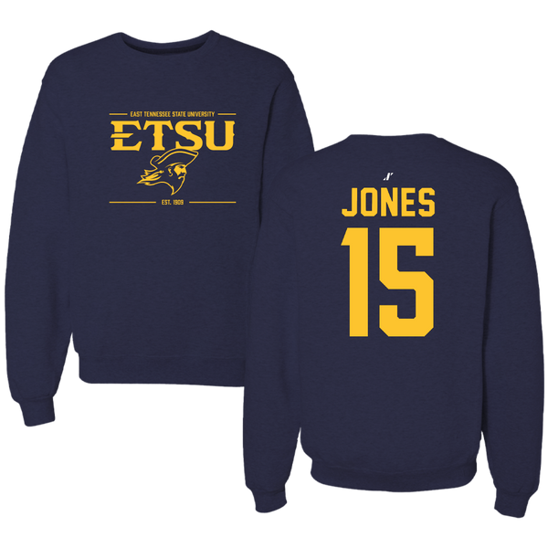 East Tennessee State University Basketball Navy General Crewneck - #15 Jaxson Jones