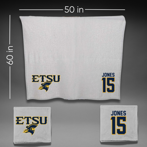 East Tennessee State University Basketball Gray Blanket - #15 Jaxson Jones