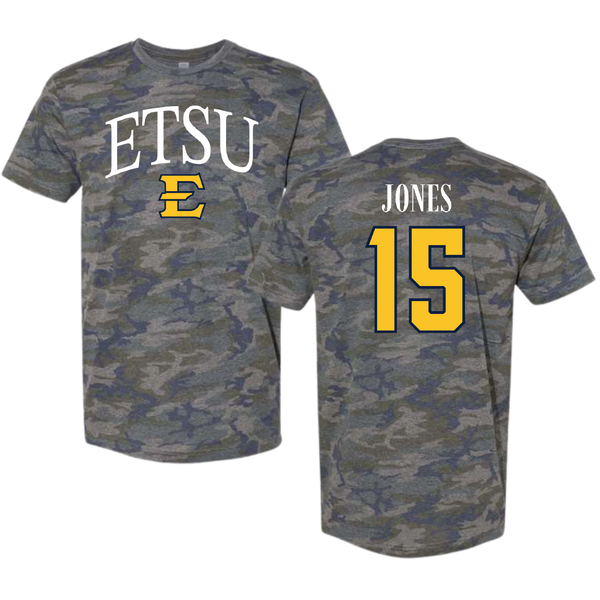 East Tennessee State University Basketball Vintage Camo Tee - #15 Jaxson Jones