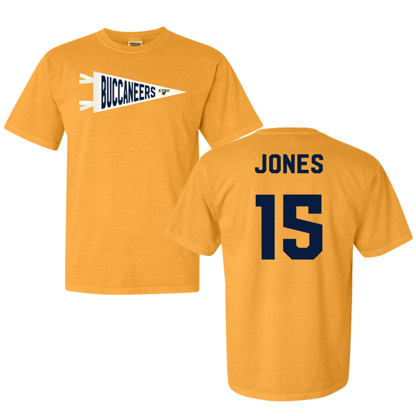 East Tennessee State University Basketball Gold Pennant Comfort Colors Tee - #15 Jaxson Jones