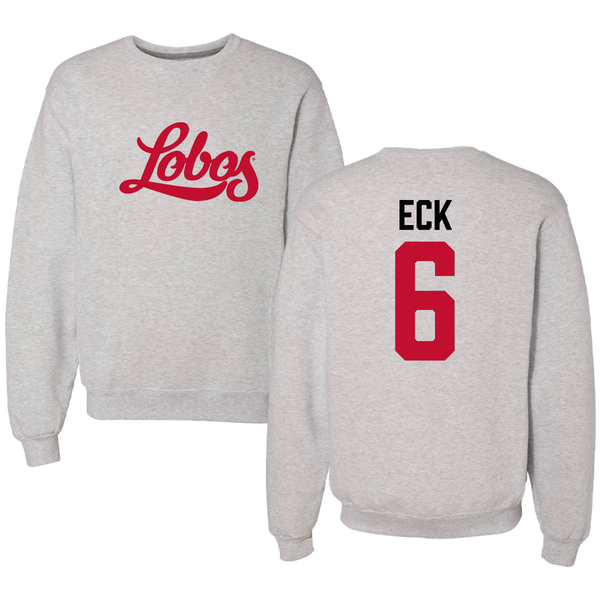 University of New Mexico Football Light Gray Crewneck - #6 Jaxton Eck