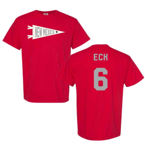 University of New Mexico Football Red Pennant Comfort Colors Tee - #6 Jaxton Eck