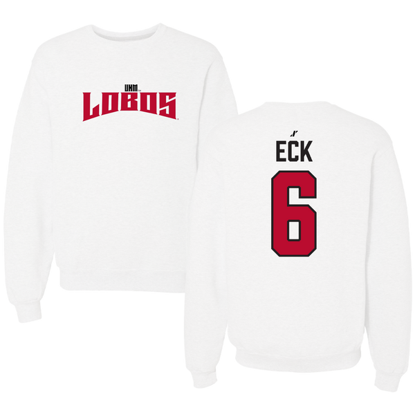 University of New Mexico Football White Classic Crewneck - #6 Jaxton Eck