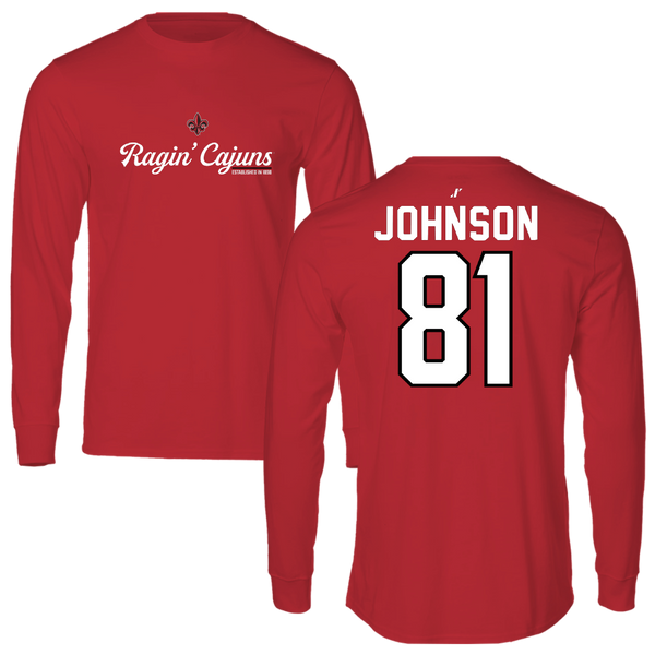 University of Louisiana at Lafayette Football Red Long Sleeve - #81 Jaydon Johnson
