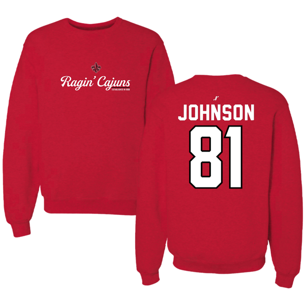 University of Louisiana at Lafayette Football Red General Crewneck - #81 Jaydon Johnson