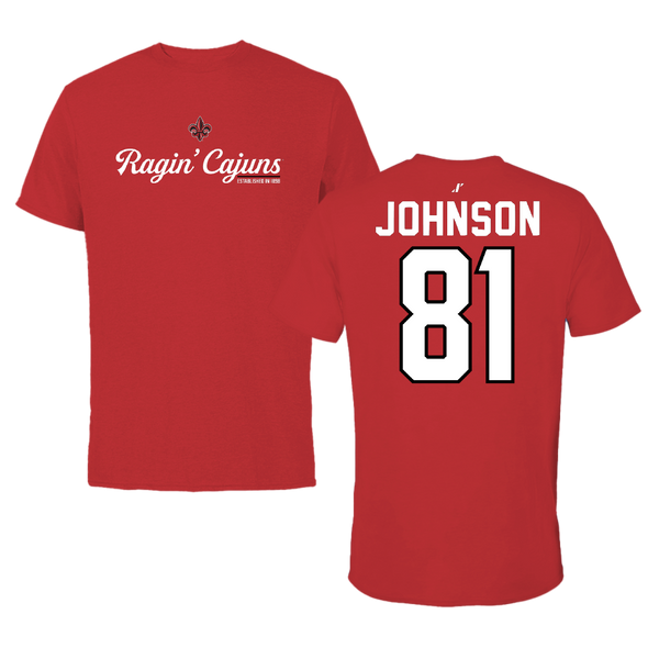 University of Louisiana at Lafayette Football Red Tee - #81 Jaydon Johnson