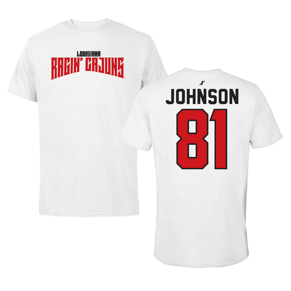 University of Louisiana at Lafayette Football White Tee - #81 Jaydon Johnson