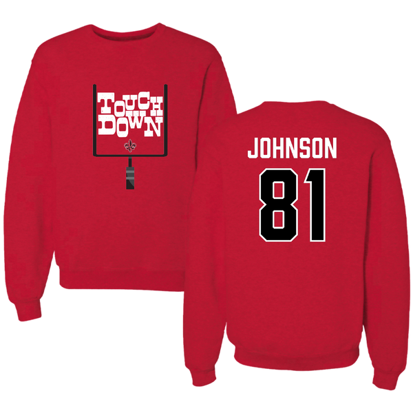 University of Louisiana at Lafayette Football Red Touchdown Crewneck - #81 Jaydon Johnson