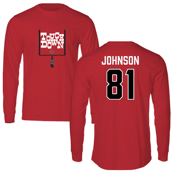 University of Louisiana at Lafayette Football Red Touchdown Long Sleeve - #81 Jaydon Johnson