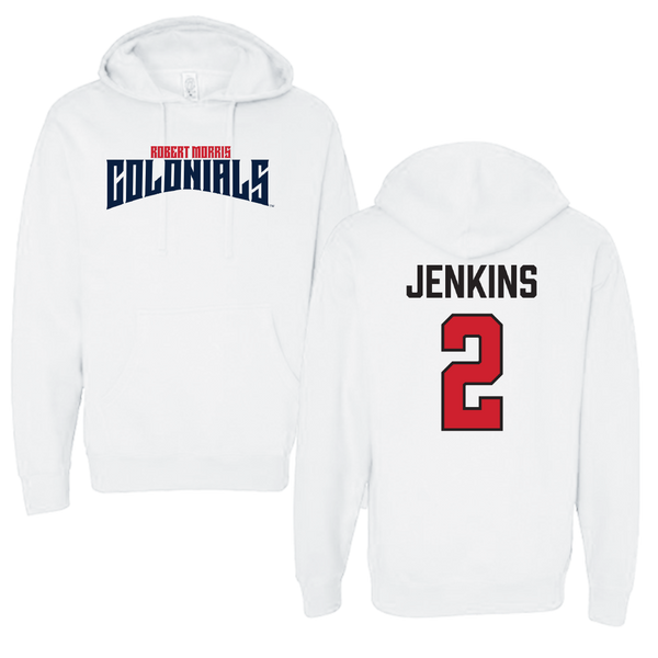 Robert Morris University Football White Colonials Hoodie - #2 Jayson Jenkins