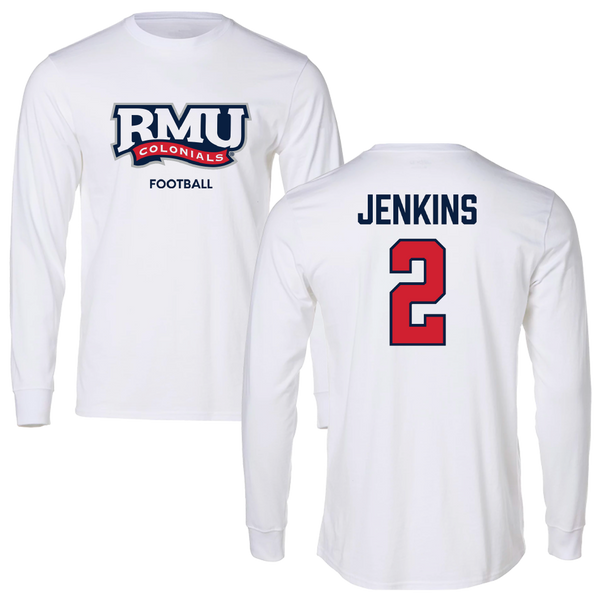 Robert Morris University Football White Mascot Long Sleeve - #2 Jayson Jenkins