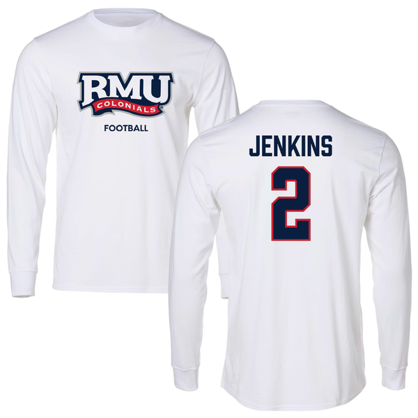 Robert Morris University Football White Classic Long Sleeve - #2 Jayson Jenkins