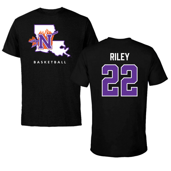 Northwestern State University Basketball Black Block Tee - #22 JC Riley