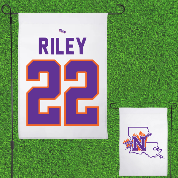 Northwestern State University Basketball White Garden Flag - #22 JC Riley