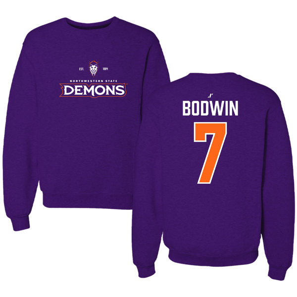 Northwestern State University Football Purple General Crewneck - #7 Jeremiah Bodwin
