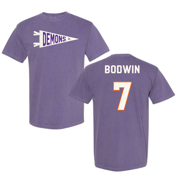 Northwestern State University Football Purple Pennant Comfort Colors Tee - #7 Jeremiah Bodwin