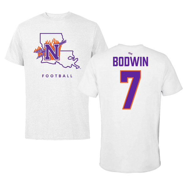 Northwestern State University Football White Tee - #7 Jeremiah Bodwin