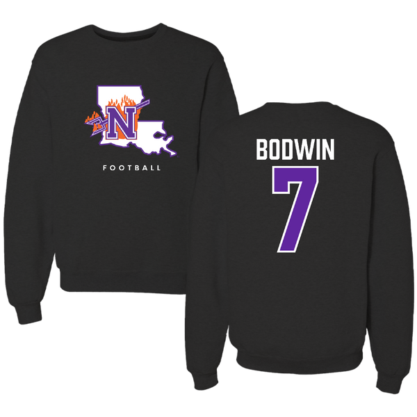 Northwestern State University Football Black Block Crewneck - #7 Jeremiah Bodwin