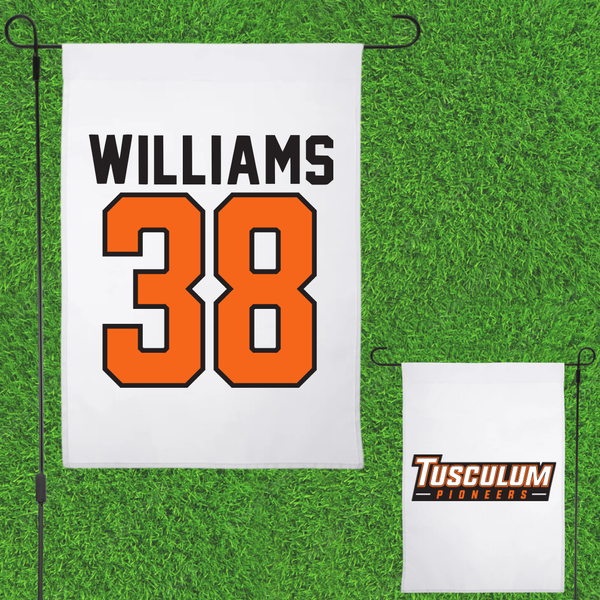 Tusculum University Football White Garden Flag - #38 Jeremiah Williams