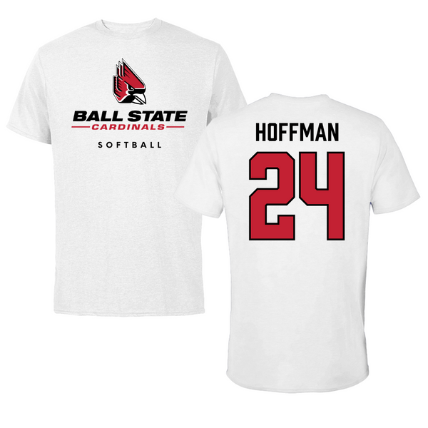 Ball State University Softball White Tee - #24 Jessica Hoffman