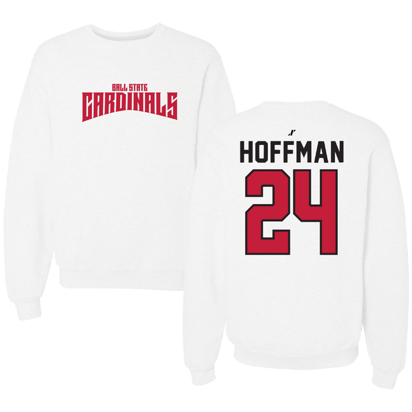 Ball State University Softball White Classic Crewneck - #24 Jessica Hoffman