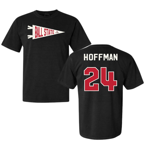 Ball State University Softball Black Pennant Comfort Colors Tee - #24 Jessica Hoffman