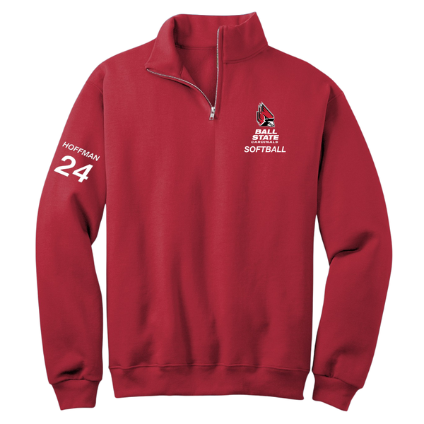 Ball State University Softball Red Quarter-Zip - #24 Jessica Hoffman