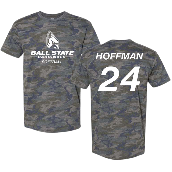 Ball State University Softball Vintage Camo Tee - #24 Jessica Hoffman