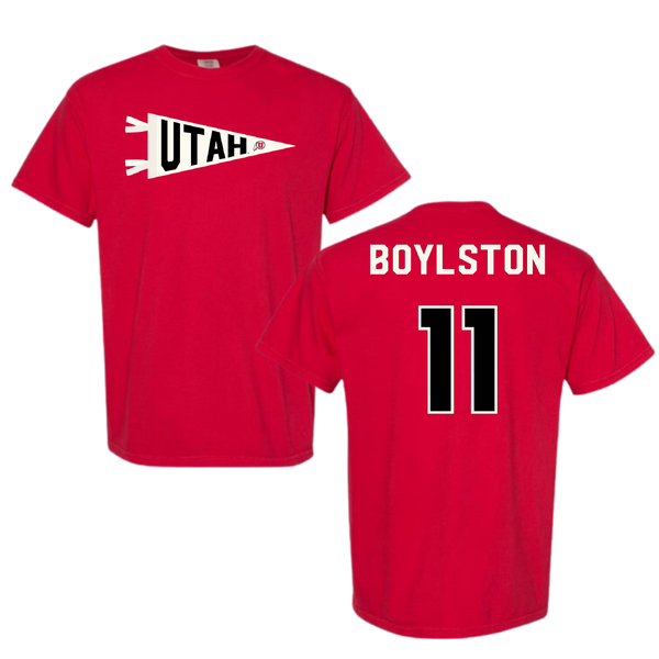 University of Utah Lacrosse Red Pennant Comfort Colors Tee - #11 Joey Boylston