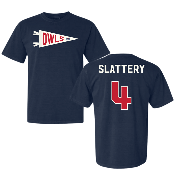 Florida Atlantic University Baseball Navy Pennant Comfort Colors Tee - #4 Joseph Slattery
