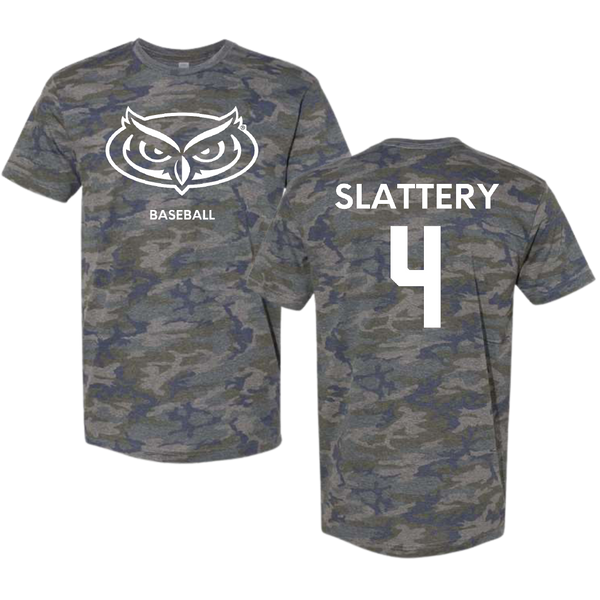 Florida Atlantic University Baseball Vintage Camo Tee - #4 Joseph Slattery