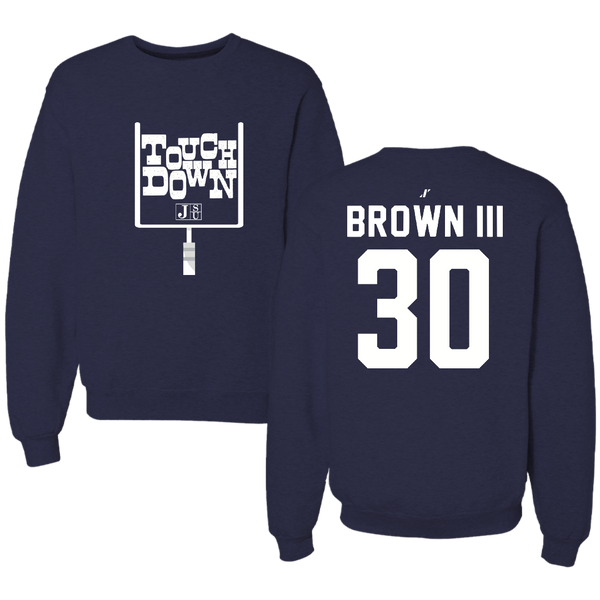 Jackson State University Football Navy Touchdown Crewneck - #30 John Brown III
