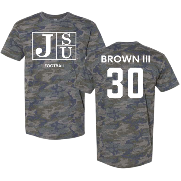 Jackson State University Football Vintage Camo Tee - #30 John Brown III