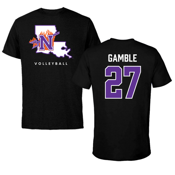 Northwestern State University Volleyball Black Block Tee - #27 Jordan Gamble