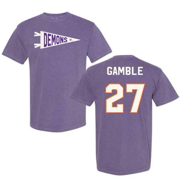 Northwestern State University Volleyball Purple Pennant Comfort Colors Tee - #27 Jordan Gamble