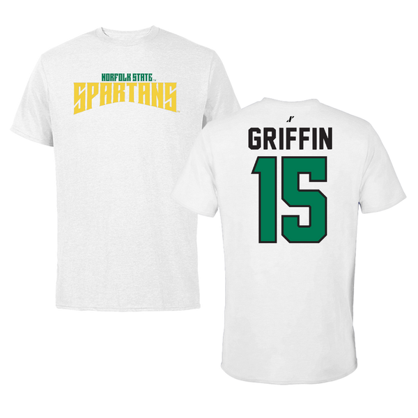 Norfolk State University Football White Classic Performance Tee - #15 Jordan Griffin