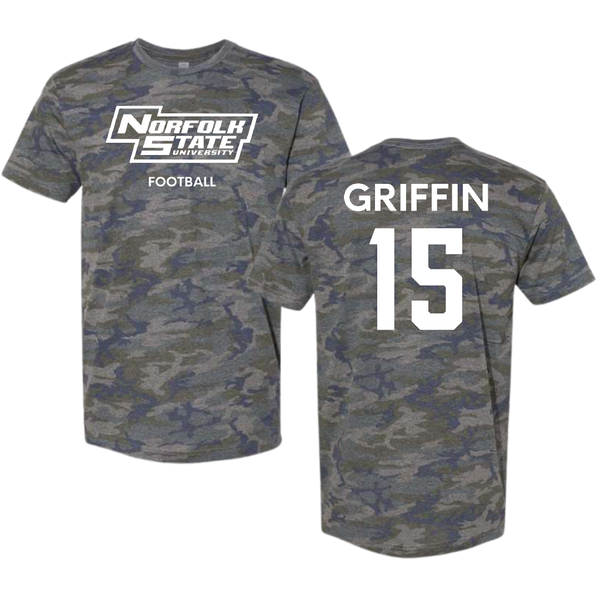 Norfolk State University Football Vintage Camo Tee - #15 Jordan Griffin