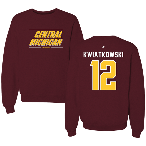 Central Michigan University Football Maroon General Crewneck - #12 Jordan Kwiatkowski