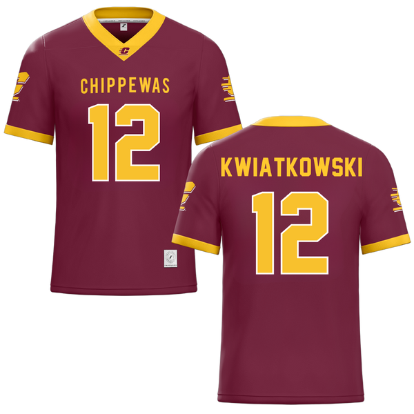 Central Michigan University Maroon Football Jersey - #12 Jordan Kwiatkowski