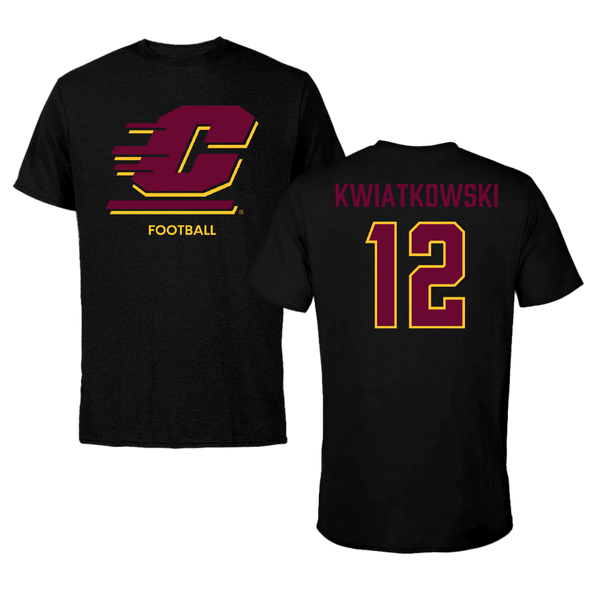 Central Michigan University Football Black Tee - #12 Jordan Kwiatkowski