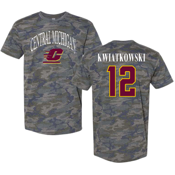 Central Michigan University Football Vintage Camo Tee - #12 Jordan Kwiatkowski