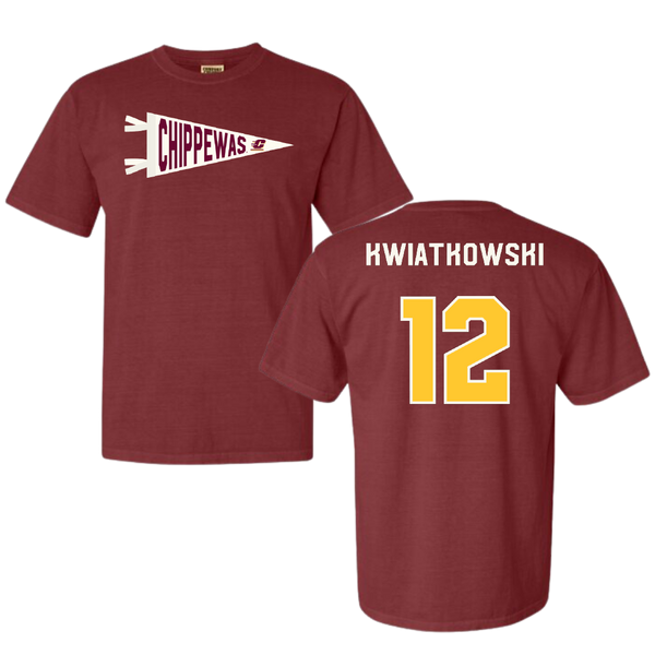 Central Michigan University Football Maroon Pennant Comfort Colors Tee - #12 Jordan Kwiatkowski