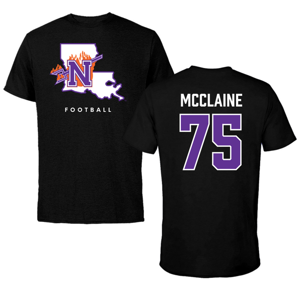 Northwestern State University Football Black Block Tee - #75 Jordan McClaine