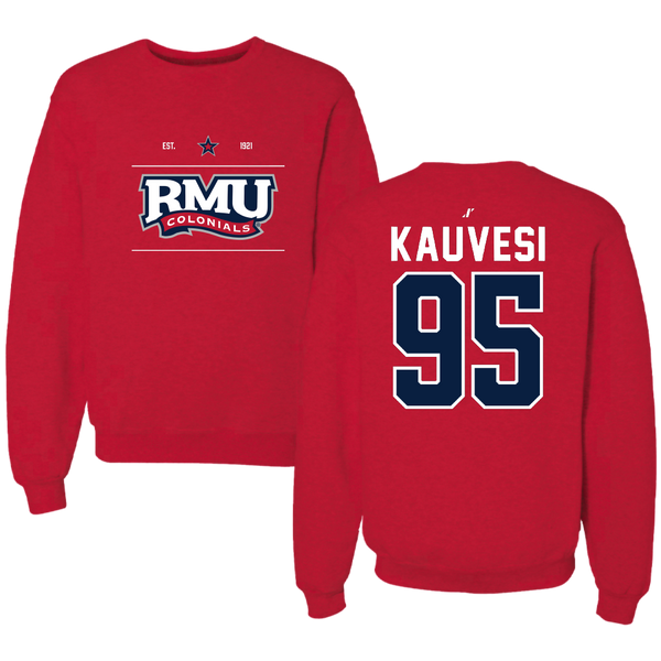 Robert Morris University Football Red General Crewneck - #95 Josh Kauvesi
