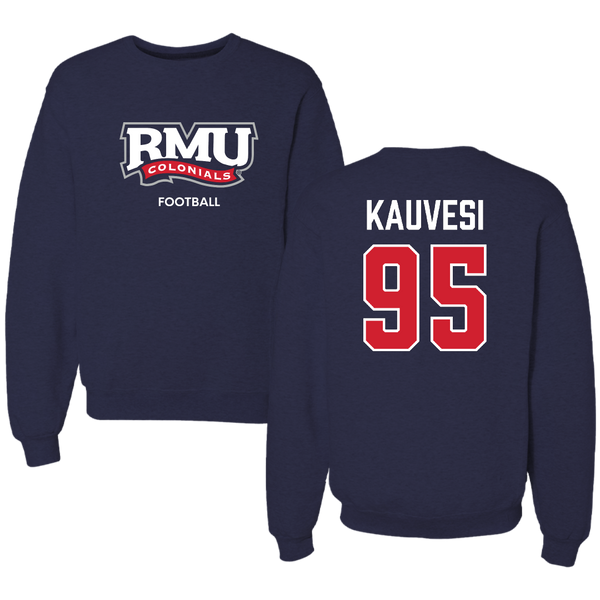 Robert Morris University Football Navy RMU Crewneck - #95 Josh Kauvesi