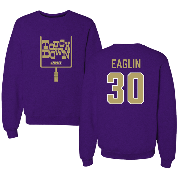 James Madison University Football Purple Touchdown Crewneck - #30 Justin Eaglin